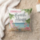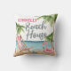 Personalisiertes Watercolor Beach House Kissen. Ein cooles Strandthema in Rosa und aquamarinen Farbtönen, das den Blick auf einen Strandausflug oder eine angenehme Stimmung freigibt. Niedlicher, rosa und weißer Liegestuhl, Regenschirm und sogar eine Flamingo-Floaty, um sich zu amüsieren. Palmen schweben, Muscheln sammeln - alles dreht sich um diese kühlen tropischen Strandbäume. Mit modernen Schriftart fügen Sie eine stilvolle Drehung. Ideal für ein Ferienhaus, oder einfach wenn Sie gewollt, ein wenig tropisches Ambiente in Ihre Zuhause zu bringen.