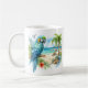 Im Sommer wird die Tasse mit einem Aquarellpapagei am Strand beleuchtet. Personalisierbar.