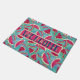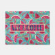 Helle Scheiben von bunten Wassermelonen stürzen in einem sommerlichen Aquarell-Grüntöne. Willkommen ist zentriert und Ihr individuelle Name wird in trendy Skripten überlagert. Fügen Sie diese fröhliche Matte hinzu, um Gäste zu grüßen oder für ein Hauswärmeschenk anpassen. Ich habe dieses Design entworfen, um das Beste aus der glücklichen Jahreszeit zu erwecken.