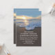 Romantische Einladungen in die Hochzeit in Urlaubsort mit einer Küstenlinie, einem wunderschönen Sonnenuntergang und einer modernen Hochzeitsvorlage.