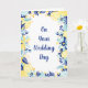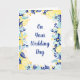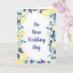 Diese neue und lustige Karte ist perfekt, um ein glückliches Paar am Hochzeitstag zu verwöhnen, aber der gesamte Text auf dieser Karte ist für Ihre individuelle Touch bereit, sodass Sie eine personalisierte Karte erstellen können, die für jeden Anlass perfekt ist. Die Vorderseite ist mit frischen gelben Zitronen mit minzgrün und königsblauen Blumen- und Blattakzenten versehen, die sie perfekt für Hochzeiten im Sommer und andere besondere Veranstaltungen machen.