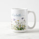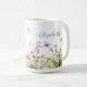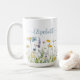 Tasse von benutzerdefinierten Skriptnamen. Eine Wiese voller Aquarellfarben, Schmetterlinge und Libellen. Der Name auf beiden Seiten befindet sich in einem Pfirsichskript-Schriftart mit angehängten Wirbel/Glyphe auf jeder Seite des Namens für eine weibliche Touch. Sie können sie behalten oder löschen. Versuchen Sie, Ihren Namen zwischen den Quadrat-Icons zu schreiben und sehen Sie, bevor Sie entscheiden. Dies ist eine weibliche Tasse perfekt als nachdenkliches Geschenk oder für sich selbst, um Ihre persönliche Lieblings-Tasse für das Büro oder auf der Zuhause zu machen. Das behalte du dir selbst.