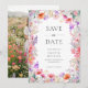 Announce your upcoming wedding with this summer wildflower save the date card. It features a pretty border of pink, coral and purple watercolor boho florals on a crisp white background. Personalize with your photo on the back. This design is perfect for couples planning a romantic spring or summer cottage garden ceremony with a botanical theme.