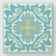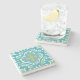 Dieser wunderschöne Kalkstein-Untersetzer zeichnet sich durch ein exotisches spanisches Fliesendesign in Aqua aus, mit orangefarbenem und grünem Akzent auf weißem Hintergrund. Es ist ideal für Getränke rund um den Innenhof oder Pool.