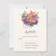 RSVP-Karte mit einer farbenprächtigen Sammlung von Frühlings- und Sommerkursen-Blume. Rosa Orange und Blau dominieren das Farbschema. Helle und mutige Blumenarrangements strahlen Glück aus. :