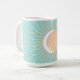 Genießen Sie die faszinierende Schönheit dieser rosa und goldenen Sonne, des weißen Mondes und der Sterne, die in sanften Pastelltönen in Rosa, Gold und Weiß gehalten sind.