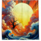 Dieser Duschvorhang hat ein künstlerisches Sonnendesign.
