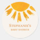 Dieser Babyduschaufkleber ist mit einer gelben Aquarellsonne und einer einfachen Typografie auf einem weichen cremefarbenen Hintergrund dekoriert. Einfach anpassbar. Ändern Sie mithilfe des Entwurfstools die Textgröße, den Stil oder die Farbe. Weil wir unsere Kunstwerke erstellen, werden Sie dieses exakte Bild von anderen Designern nicht finden. Original Wasserfarbe © Michele Davies.