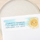 Dieses Baby Dusche Rücksendelabel ist mit einer niedlichen Aquarellfarbe, die die Sonne lächelt, und einem blauen Himmelshintergrund geschmückt. Einfach anpassbar. Original Wasserfarbe © Michele Davies.