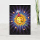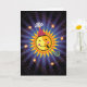 Eine gelbe und rote Sonne mit einem Party Hut und Gebläse strahlt das Glück allen Himmelsrichtungen aus und schießt Sterne. Sentiment lautet: "Heute ist dein Tag, das Zentrum des Universums zu sein." ©Mindy Pierce