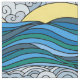 Hand-gezeichnete Vintage Illustration eines Sonnenuntergangs über dem Ozean mit wechselnden Farben.