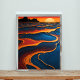 Dieses faszinierende abstrakte Kunstwerk besticht durch ein lebendiges Zusammenspiel von Orange, Blau und Schwarz, das dem Gefühl einer sonnendurchfluteten Landschaft ähnelt. Die wirbelnden Muster und Bio Formen schaffen ein Gefühl von Tiefe und Bewegung und laden den Betrachter ein, seine Komplexität zu erforschen. Ideal, um Ihrer Zuhause oder Ihrem Büro eine Touch moderner Kunst hinzuzufügen.