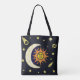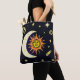 Diese nützliche Tasche zeigt Sonne und Mond, gelbe Sterne, Kometen, Asteroiden und Galaxien, vor einem dunkelblauen Hintergrund. Ideal für Shoppingtouren und ein buntes Accessoire oder Geschenk.