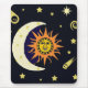 Dieses Mousepad zeigt Sonne und Mond, gelbe Sterne, Kometen, Asteroiden und Galaxien, vor einem dunkelblauen Hintergrund. Ein schönes Accessoire für den Computer.
