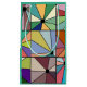 Diese Geschenktasche hat ein abstraktes Design, das aus neun Quadraten mit einem Kreis und "Strahlen" aus dem Kreis in vielen verschiedenen Farben besteht.