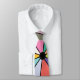 Diese Krawatte hat ein abstraktes Design, das aus neun Quadraten mit einem Kreis und "Strahlen" aus dem Kreis in vielen verschiedenen Farben besteht.