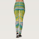 Hellgelbe Sonnenstrahlen auf blau, grün und weiß gestreiften Leggings machen dieses Paar zum Tragen, ein handgemaltes Kunstwerk.