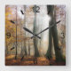 Sun Rays Mystic Misty Landschaftlich Forest - Wähl Quadratische Wanduhr