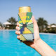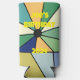 Dieser Seltzer kann kühler hat ein abstraktes Design, das aus neun Quadraten besteht, mit einem Kreis und "Strahlen" aus dem Kreis in vielen verschiedenen Farben.
