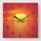 Sun Set Orange Calm Ocean Sonnenuntergang Schwarz Quadratische Wanduhr