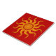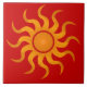 Sonnenblende auf einer dekorativen, würzigen roten Fliese. Kann bestellt werden, wie es ist, oder als Trivet oder Geschenkboxen. Die Hintergrundfarbe kann mithilfe des Entwurfstools bearbeitet werden. Mischen und mit anderen Sonnenstrahlen gezeigt. Kaufen Sie in Volumen und rett! Design von 369Mandala : 369.