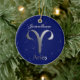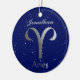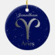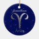 Ornament im Tiersymbol für Äries in einem silbernen Farbverlauf auf sternenförmigen Hintergrund, mit bearbeitbarem Namensfeld