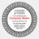 Eine Aufklebervorlage mit einer attraktiven schwarz-weißen Sonnenstrahlen-Umgebung. Diese Version ist mit Feldern für einen Firmennamen und Kontaktdaten ausgestattet. Obwohl der Text auf dem 1,5"-Aufkleber ziemlich klein sein wird, sollte er gut lesbar sein.