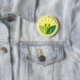 Die Zukunft ist Grün, ein Pinback-Knopf mit einer originalen Mango Moon Studio Grafik eines Sonnenblumensteckers und grüne Blätter zur Förderung erneuerbarer Energien.