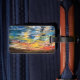 Originelles Gemälde eines Sonnengottes in der Wüste. Erstellt durch Verwendung von Acrylfarben.