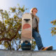 Watercolor drawing of a red sunset in the mountains. Retro design. Inspired by Art, now on your skateboard.