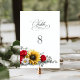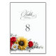 Sunflower and Red Rose Floral Wedding Tischnummer
