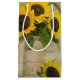 Gelber Sonnenblumenstrauß in Vintager Vase mit grungenhafter Textur.