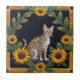 "tan brown cat on black", "spotted leopard savannah cat", "yellow sunflower flowers fan", "summer sunflowers floral lover", "feline kitty pet", "traditional rural rustic ceramic tile", "farmhouse countryside country", "green leafy leaves", "crazy cute kitten lady", "wild cat mom dad gift"