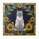 "white siamese cat on black", "grey face blue eyes", "yellow sunflower flowers fan", "summer sunflowers floral lover", "feline kitty pet", "traditional rural rustic ceramic tile", "farmhouse countryside country", "green leafy leaves", "crazy cute kitten lady", "gray cat mom dad gift"