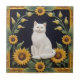 "white cat on black", "persian cat", "yellow sunflower flowers fan", "summer sunflowers floral lover", "feline kitty pet", "traditional rural rustic ceramic tile", "farmhouse countryside country", "green leafy leaves", "crazy cute kitten lady", "cat mom dad gift"