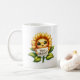 This ceramic coffee mug is shown with a cute sunflower cutie print.