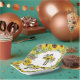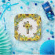 Beautiful, cheerful sunflowers, eucalyptus, and palm leaves create a floral border design for your baptism plates. A rustic wooden cross adorned with sunflowers, pampas grass and foliage adds to the blessed occasion. This paper plate is perfect for any late summer or autumn baptism.