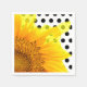 Party Napkins mit Sonnenblumenbild vor schwarzem Polka-Punkt-Hintergrund.