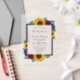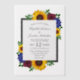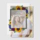 Design features elegant sunflowers, roses, and wildflowers with a golden yellow, burgundy and blue color palette. Design also features a charcoal gray frame. You can change the background color on the front and back to the color of your choice or leave both set to white.