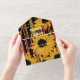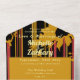 Simplify your wedding stationery with this bold modern sunset coral and gold sunflower all-in-one invitation. This striking design features artistic sunflower silhouettes with integrated coral accents and luxe striped patterns throughout. The convenient fold-out format includes your invitation details, wedding website QR code, RSVP section with meal choices and guest count, plus a built-in return address envelope—everything your guests need in one elegant piece.