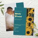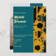 Sunflower Teal Blue Gold Modern Wedding Photo Einladung