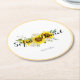 Sunflower watercolor white rose wedding runder pappuntersetzer
