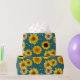 High quality, heavy-duty wrapping paper with sunflowers design in a seamless repeating pattern. The big yellow garden flowers are printed over a cool, gray-blue. Choose any roll length, with paper that comes in matte or glossy finishes.