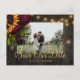 Yellow gold sunflowers, burgundy roses, and strings of twinkle lights. Wir haben dark brown elegant barn wood foto save the wedding postcard. ++++++++++++++ Easy to personalize with your names and text on both sides! +++++++++++++ Suitable for floral summer or autumn fall outdoor garden backyard rustic country or farmhouse themed weddings.