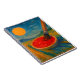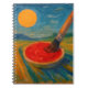 Dieses lebendige surreale digitale Bild zeigt einen riesigen Pinsel, der auf einer halbierten roten Wassermelone platziert wurde und Natur und Kreativität in einer spielerischen, traumhaften Komposition vereint. Eine große, gelbe Sonne strahlt in einem strukturierten, blauen Himmel und strahlt Wärme über eine weitläufige, minimalistische Landschaft, die in fließenden Grüntönen, Blues und Gelben gemalt ist. Die Szene verbindet Launen mit symbolischer Tiefe - was auf eine Welt hindeutet, in der Schöpfung und Realität untrennbar miteinander verwoben sind.
