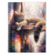 This notebook features a peaceful ginger cat resting on a ledge, bathed in warm sunlight against a luminous, stained-glass-inspired cityscape. Soft pastel hues and prismatic reflections create a dreamy, tranquil atmosphere that blends cozy realism with modern digital art. The composition evokes calm, comfort, and quiet moments of reflection, making it perfect for journaling, notes, or creative writing. Ideal for cat lovers and fans of artistic, serene designs.