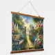 Sunlit Garden Pathway Gate Scene Wandteppich Mit Holzrahmen