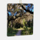 Step into the timeless serenity of the South with this evocative image, Sunlit Spanish Moss Trail. A quiet path winds beneath a dense canopy of ancient live oaks, their massive branches draped with long, ethereal strands of Spanish moss. The scene is bathed in a beautiful, ethereal light as the morning sun breaks through the foliage, illuminating the silvery-green moss and creating a truly magical glow. This piece captures the quiet beauty and historical mystery of Florida’s untouched lowlands.