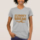 Sunny Break T-Shirt: Sparkling gold glitter graphic for a fun, relaxed vibe. Available on the comfy Women's Bella+Canvas Slim Fit T-Shirt in many colors. Easily customize with your own text! Perfect for vacation and summer.