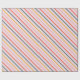 The paper features a large-scale, mid-century modern geometric pattern consisting of diagonal stripes. The design uses a coordinated mix of muted coral, sunny mustard yellow, and sage green set against a soft lavender or pale pink background. Perfect for birthdays, holidays, or everyday gifting, this design adds a joyful pop of color to any present—no extra embellishments needed.